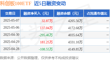 本站消息,5月7日,科创板100ETF(588120)融资买入339.36万元,融资偿还306.49万元,融资净买入32.87万元,融资余额4205.56万元,近20个交易日中有12个交易日出现融资净买入。